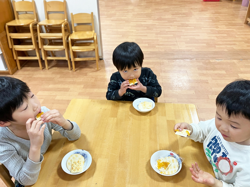 おやつの時間を楽しんだり、異年齢のお友だちと関わりながら過ごすことで、まるで家庭のような落ち着いた雰囲気の中で、のびのびと過ごすことができます。
