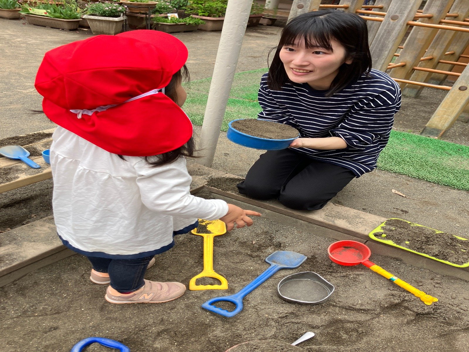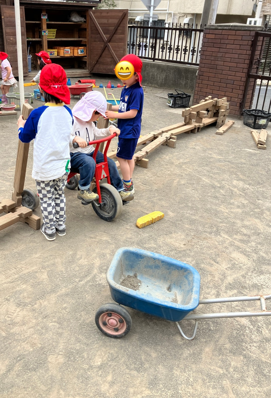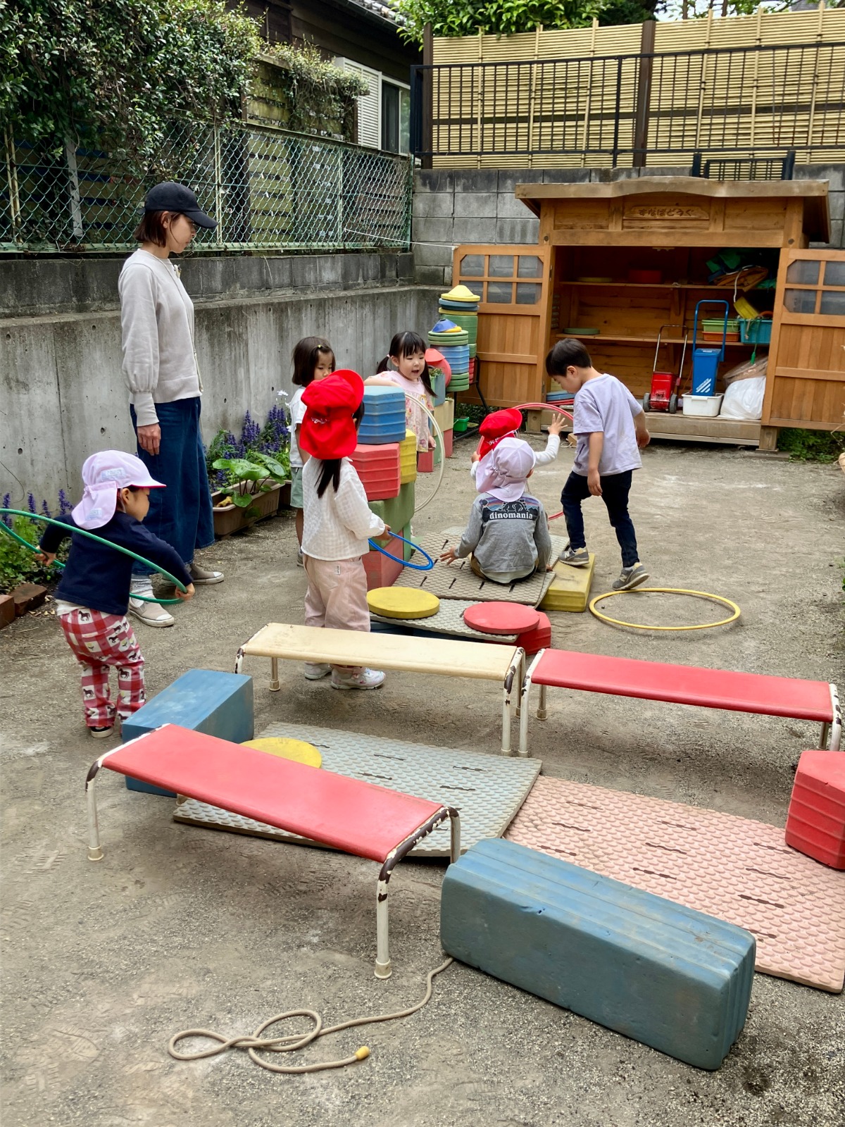 新入園児の友だちも庭に出て、やりたいことを見つけ、動き出しました😃
