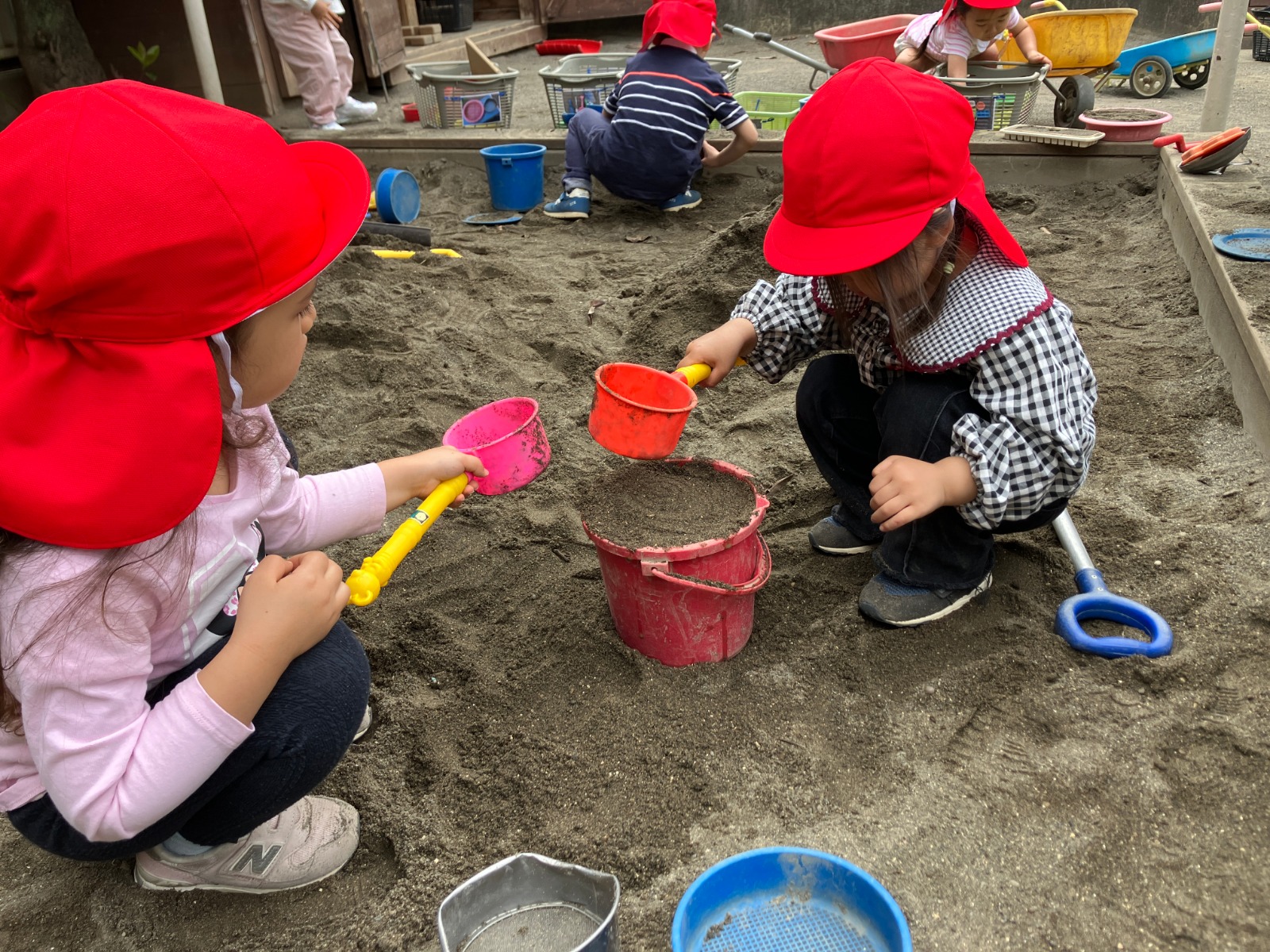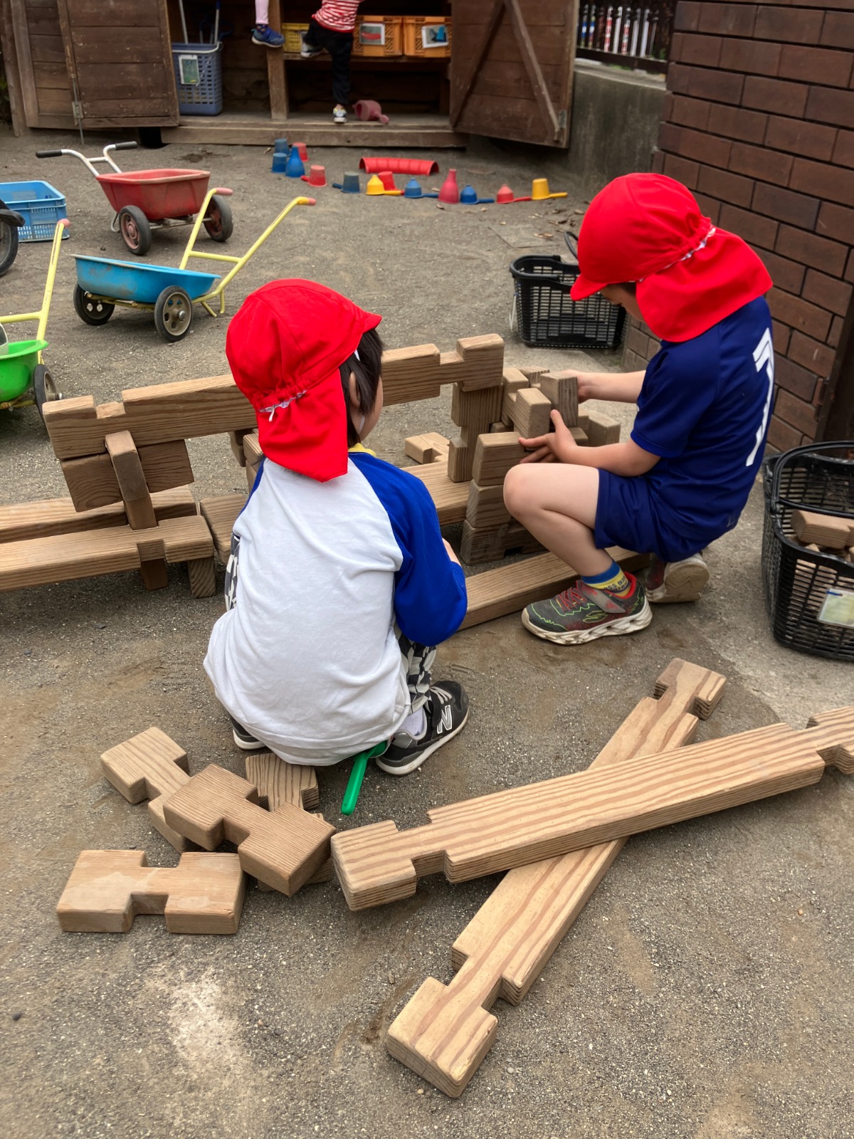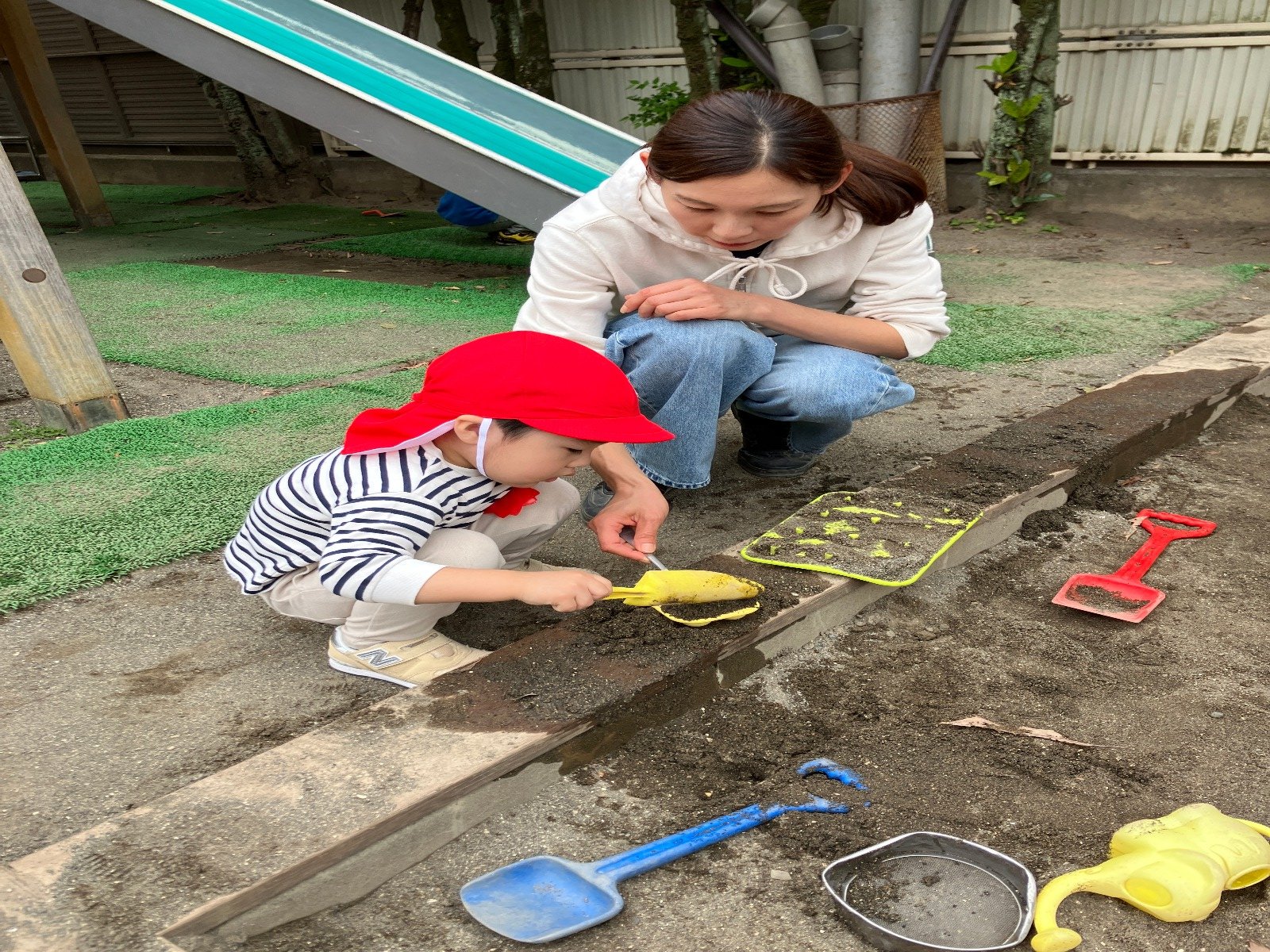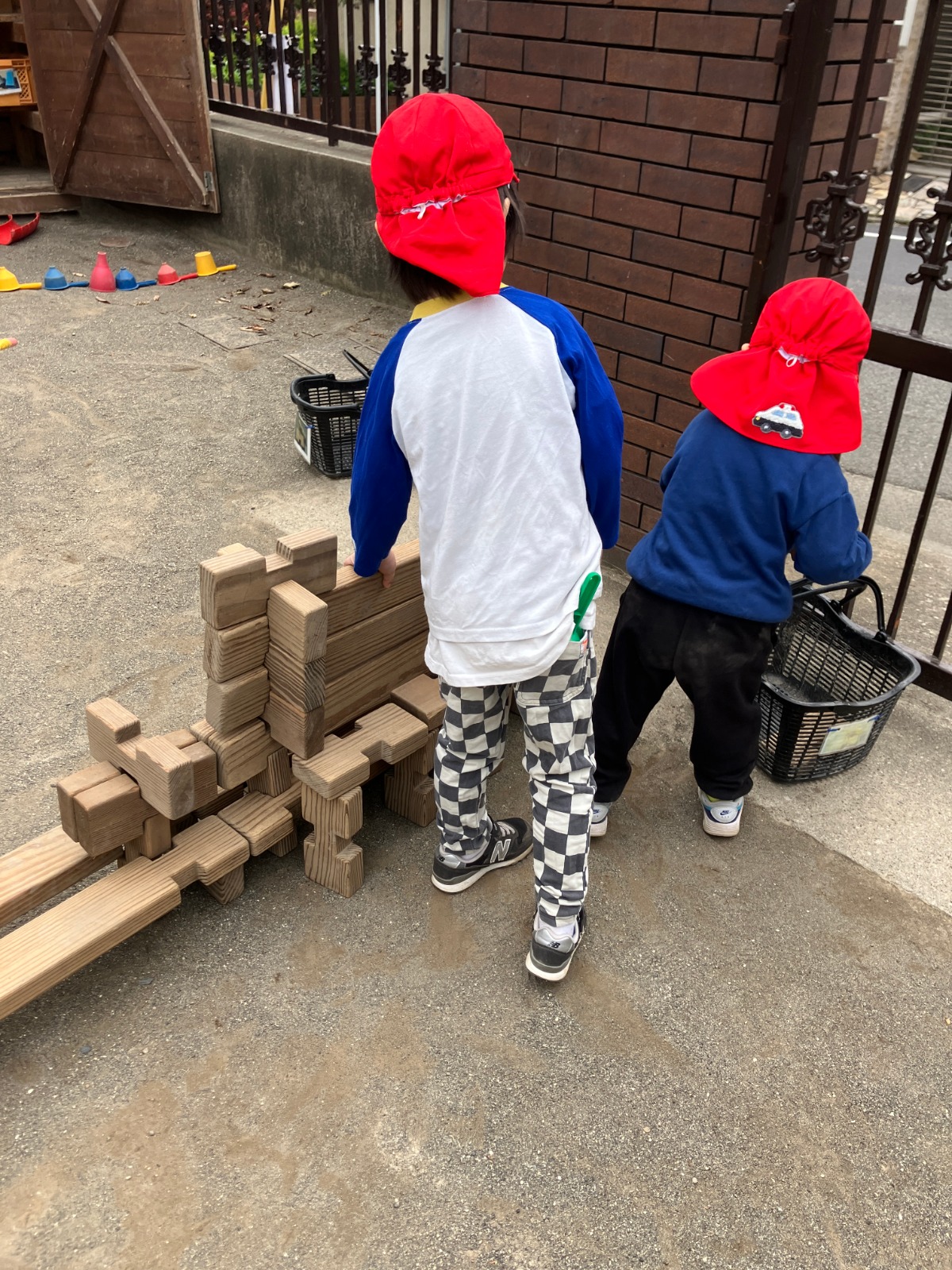 新入園児の友だちも庭に出て、やりたいことを見つけ、動き出しました😃
